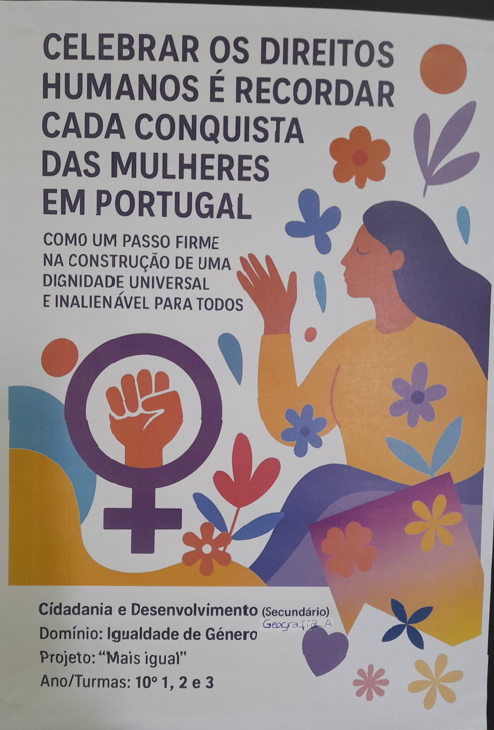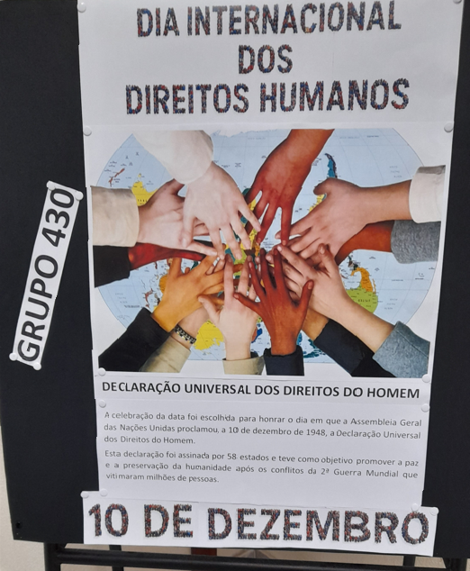 No dia 10 de dezembro, a nossa escola comemorou o Dia Internacional dos Direitos Humanos com atividades criativas para os alunos do 7.º (Cidadania e Desenvolvimento), 10.º (Geografia A/Cidadania) e 12.º anos (Economia C), em parceria com o Clube Europeu.